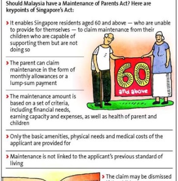 内容は、「60歳以上のシンガポール居住者が自立できない場合、その子供が面倒を見る。そうしない場合は、5000ドル以下の罰金が科されるか、6ヶ月以下の懲役刑を宣告されることがある。」ということです。